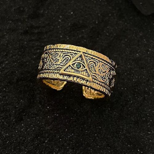 All-Seeing Eye Tang Grass Pattern Diamond Inlaid Ring, adjustable open design, available in two colors, cash on delivery, free home delivery